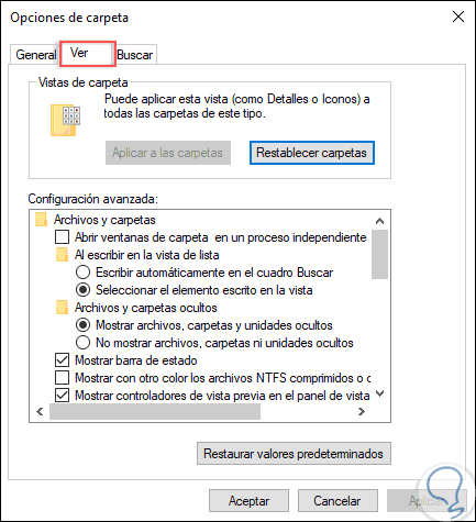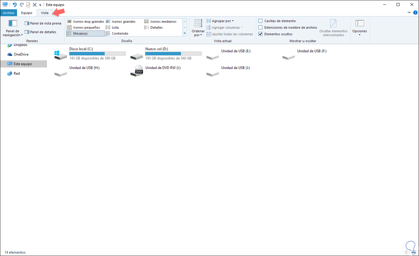 - Activar casillas para ver elementos ocultos, extensiones de los archivos o casillas de elemento