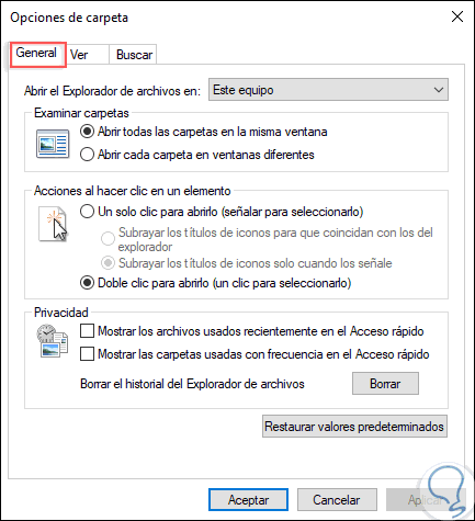 5. Editar los parámetros del Explorador de archivos en Windows 10