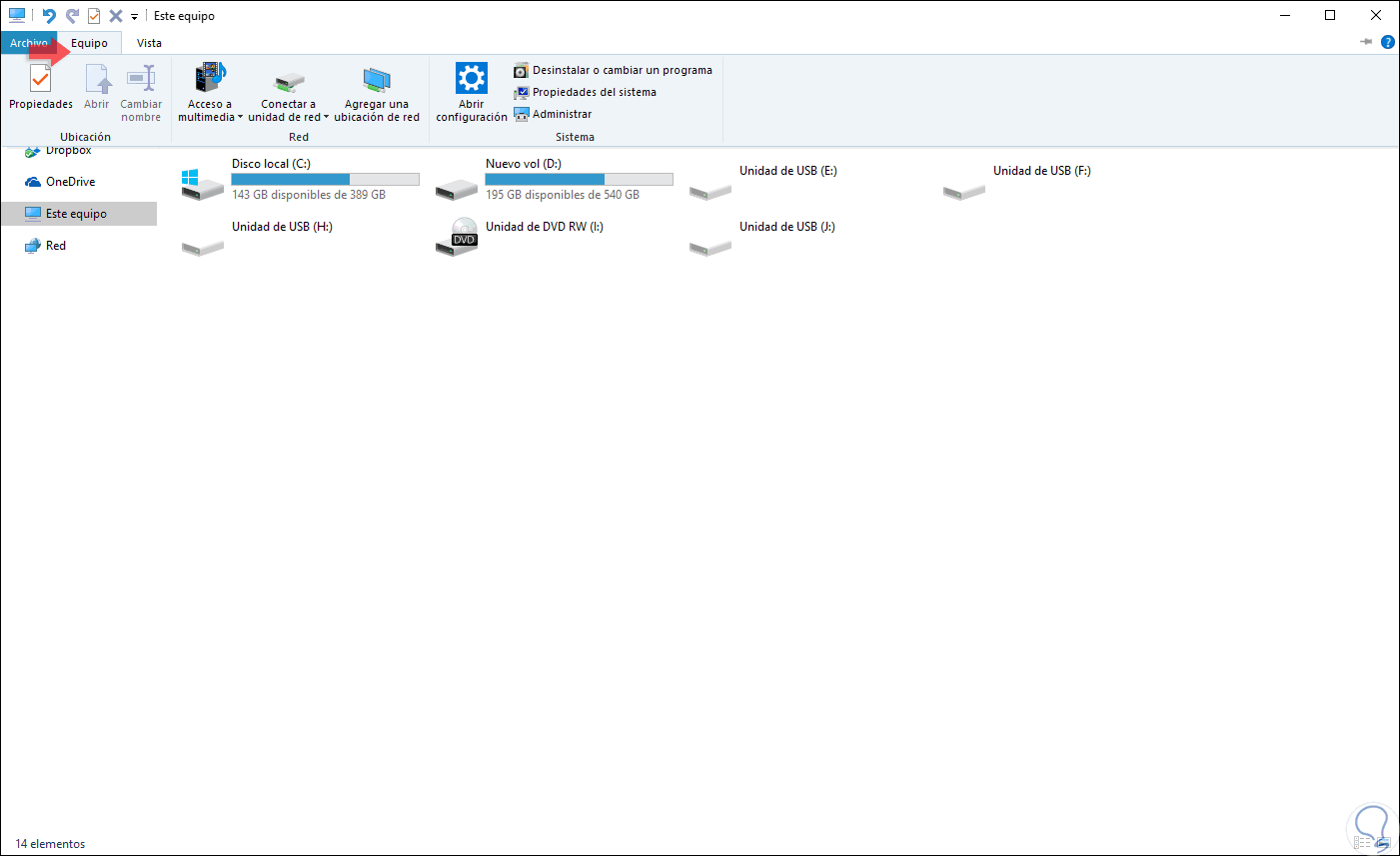Al acceder al Explorador de archivos este será el aspecto ofrecido: