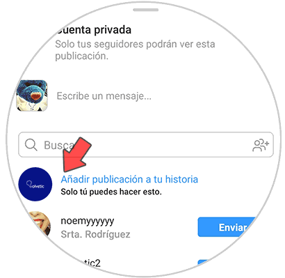 Ahora veremos que en la parte superior aparece la opción de “Añadir publicación a tu historia”