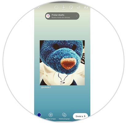 Veremos que aparece la imagen y la posibilidad de poder editarla al igual que cualquier historia. Vemos que en la parte inferior de la imagen aparece el nombre de la cuenta desde donde hemos cogido esta publicación.