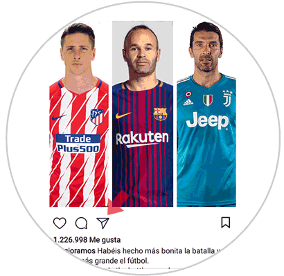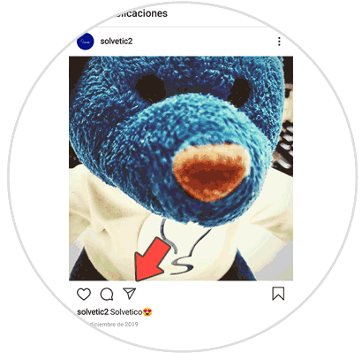Una vez seleccionada la imagen, debes hacer clic en icono con especio de “Avion” para comenzar a compartir la publicación.