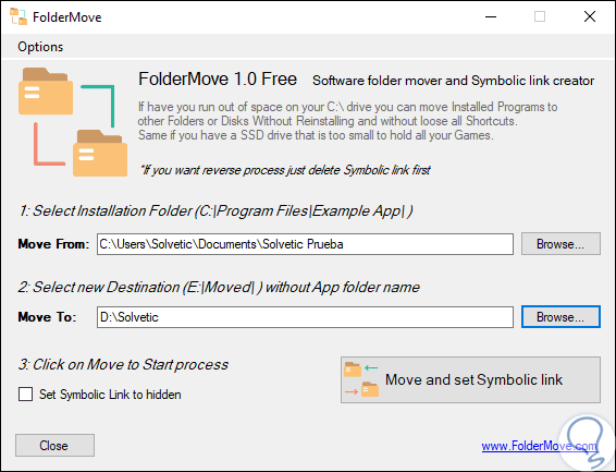 Al usar el programa FolderMove, es posible reubicar el programa instalado o la carpeta del juego sin problemas ya que FolderMove crea enlaces simbólicos para mover carpetas, es decir, se creará un enlace simbólico desde el directorio anterior al nuevo. Para conocer un poco este proceso, un enlace simbólico contiene en si una cadena de texto la cual es interpretada y seguida automáticamente por el sistema operativo como una ruta hacia otro directorio.