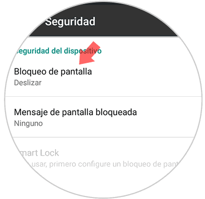 Al pulsar allí, será desplegada la siguiente ventana donde pulsamos en la opción "Bloqueo de pantalla"