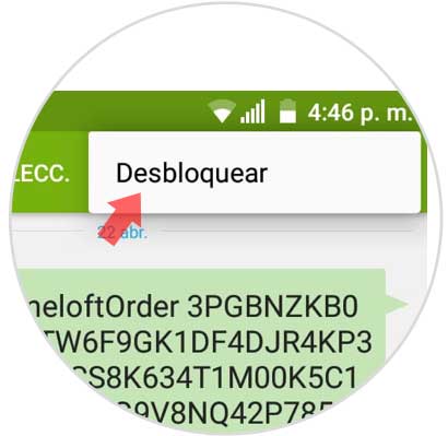 Para el desbloqueo del remitente de estos mensajes, basta con ir de nuevo al mensaje, abrirlo y al pulsar en el menú seleccionar la opción "Desbloquear"