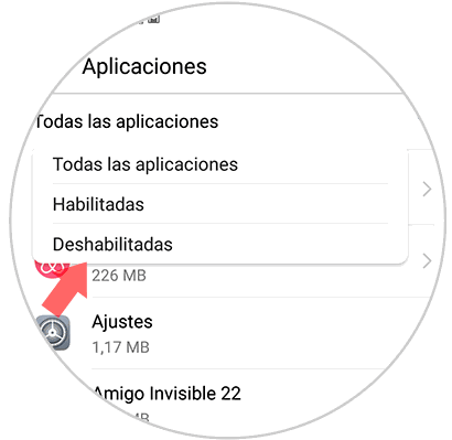 - Deshabilitadas: Al pulsar sobre ella te mostrará el listado de Apps ocultas