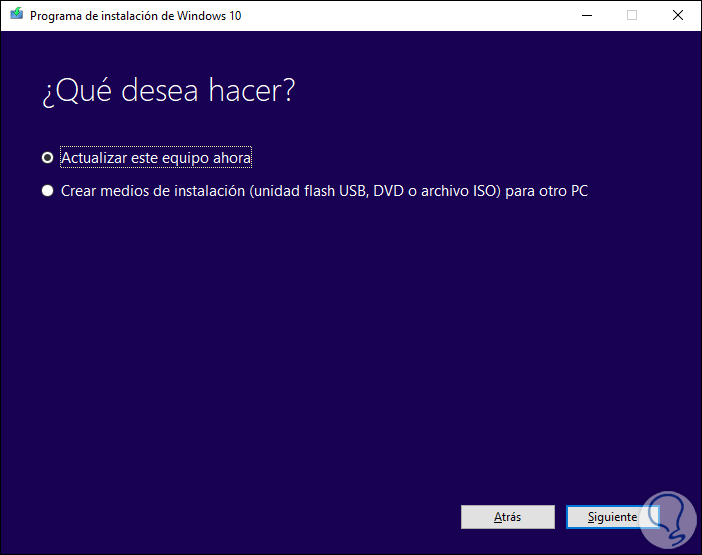 Allí pulsamos en Siguiente y esperamos que la utilidad complete el proceso de actualización a la nueva versión de Windows 10.