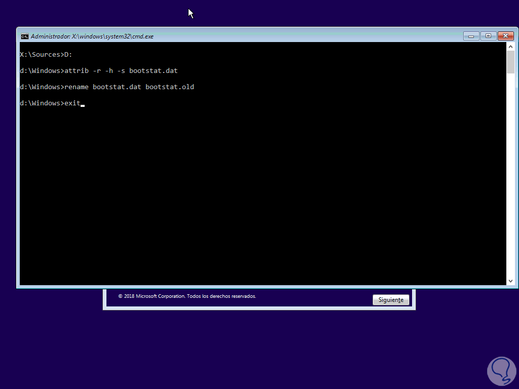 cd d:\windows attrib -r -h -s bootstat.dat rename bootstat.dat bootstat.old exit