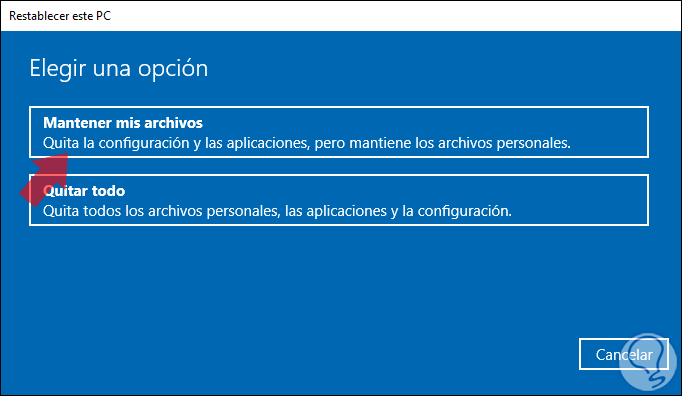 Allí definimos si conservamos nuestros archivos o realizamos una instalación limpia de Windows 10.