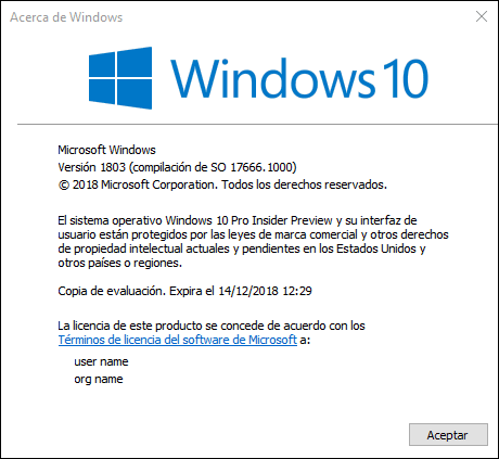 Por ello, al instalar el sistema operativo, la fecha del equipo en la configuración de BIOS o UEFI juega un rol vital ya que la ISO y/o Configuración busca la fecha correcta para así permitir el uso correcto del sistema, podemos comprobar la fecha límite de Windows 10 en las versiones Insider usando la combinación de teclas Windows + R y ejecutando el comando winver: