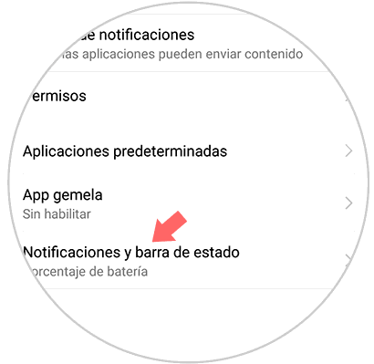 Una vez dentro desliza hasta la última opción y encontrarás la opción “Notificaciones y barra de estado”. Pulsa aquí.