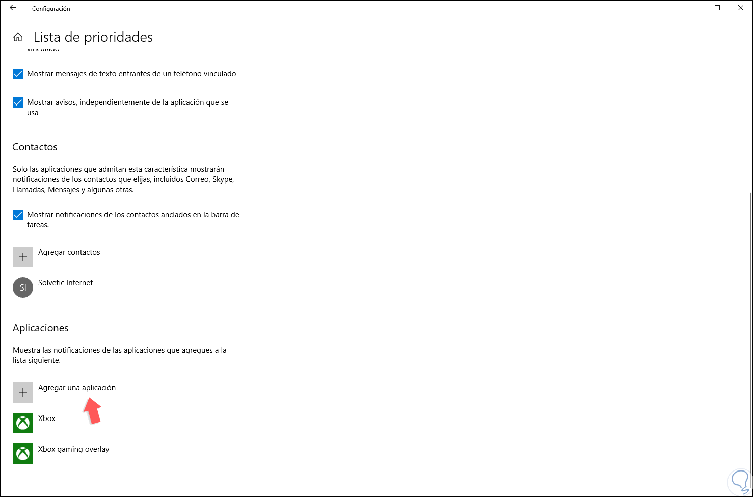 En la sección “Aplicaciones” estaremos en la capacidad de añadir aplicaciones de las cuales deseamos recibir algún tipo de notificación, por defecto esta añadido Xbox y Xbox gaming overlay. Para agregar una nueva aplicación simplemente debemos dar clic en el botón “Agregar una aplicación” y en la ventana desplegada seleccionarla: