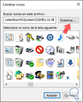 Allí pulsamos en el botón “Cambiar icono” y seleccionaremos el icono deseado en las opciones desplegadas: