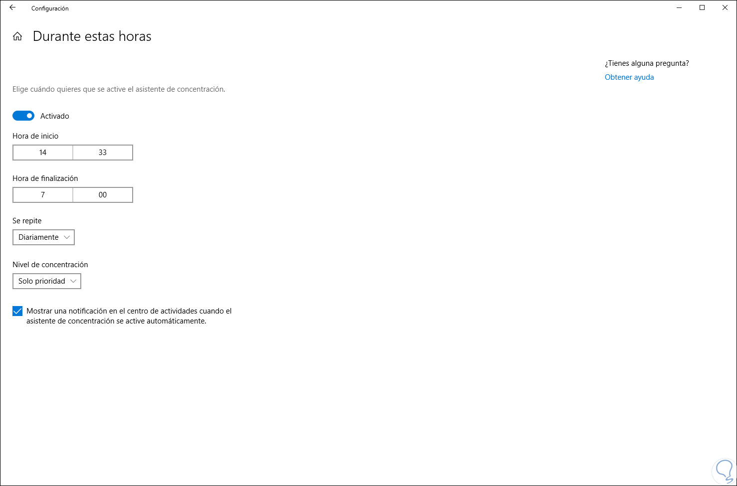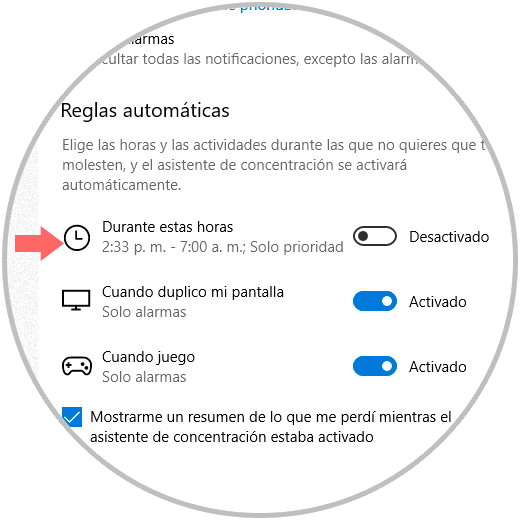 3. Formas de configurar el asistente de concentración en Windows 10