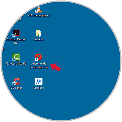 Podemos crear un acceso directo en el escritorio con el fin de con un doble clic acceder directamente a las opciones del asistente de concentración.