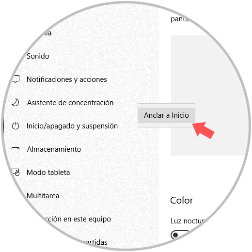 Allí daremos clic derecho sobre Asistente de concentración y seleccionamos la opción “Anclar a Inicio”: