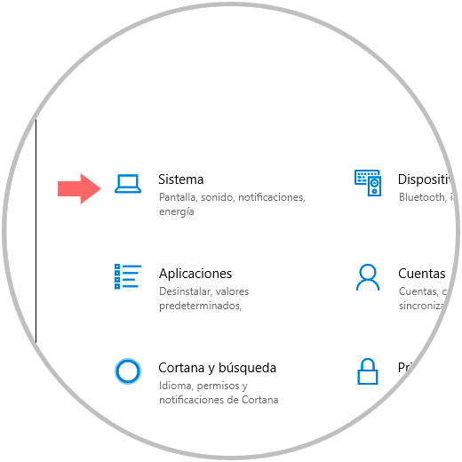Para iniciar el proceso, iremos al menú Inicio y allí seleccionamos la utilidad “Configuración” donde veremos lo siguiente: