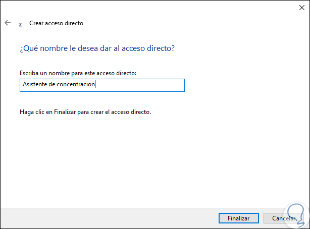 4. Crear un acceso directo al asistente de concentración en Windows 10