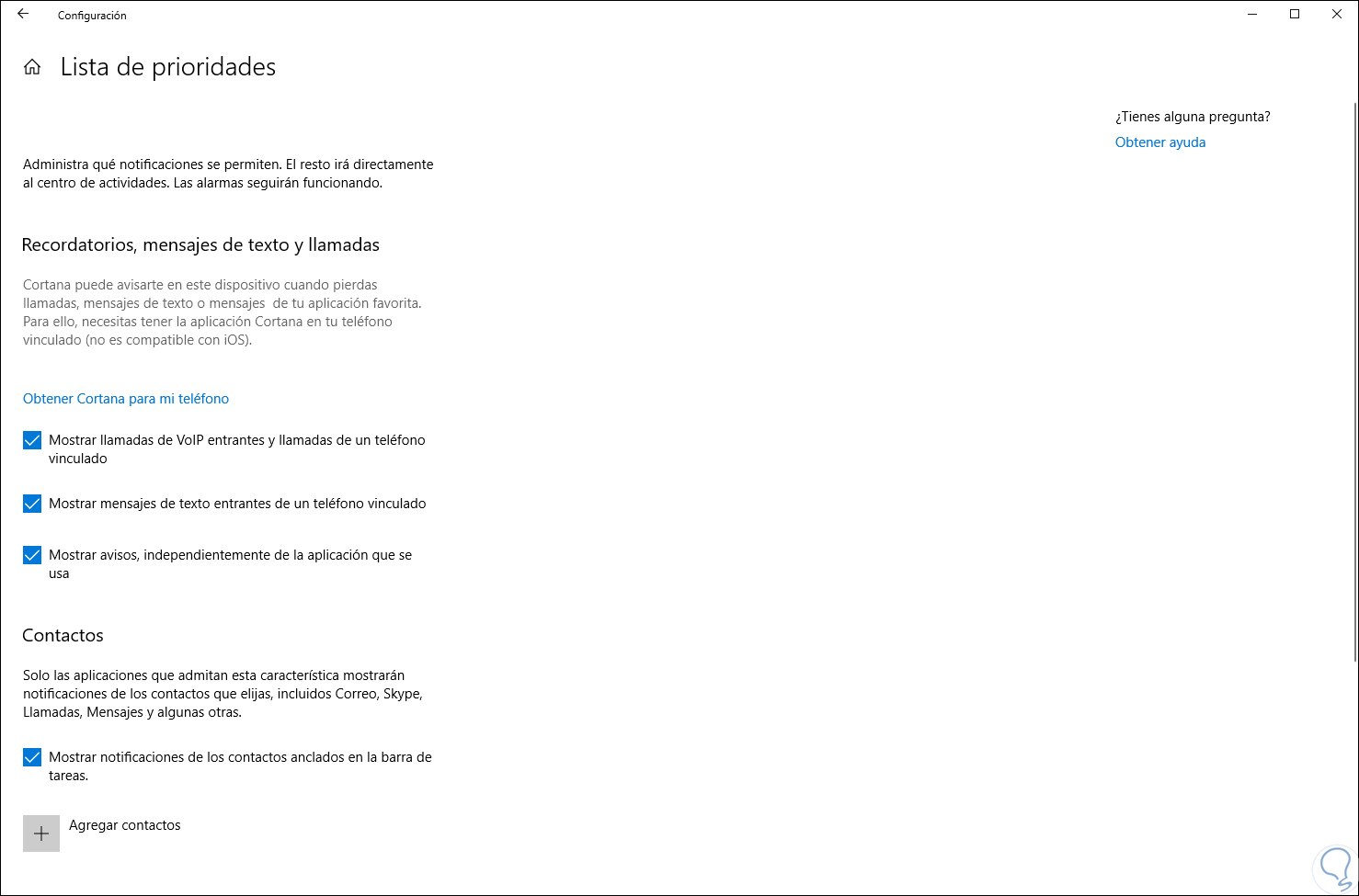 Windows 10 nos ofrece algunas alternativas para configurar este asistente, estas son: