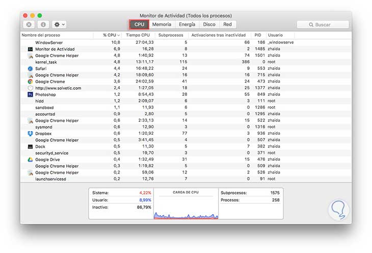 En el caso de macOS, podemos ir al Monitor de actividad para conocer el uso de ancho de banda de cada aplicativo: