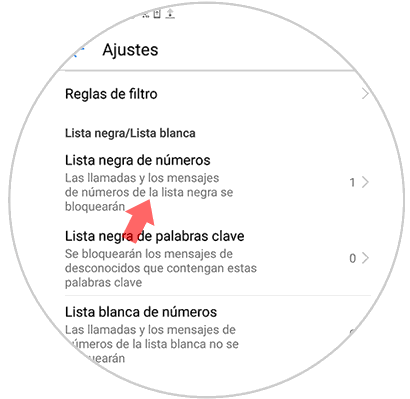 Ahora pulsa en “Lista negra de números” para acceder a la lista negra creada en tu teléfono.