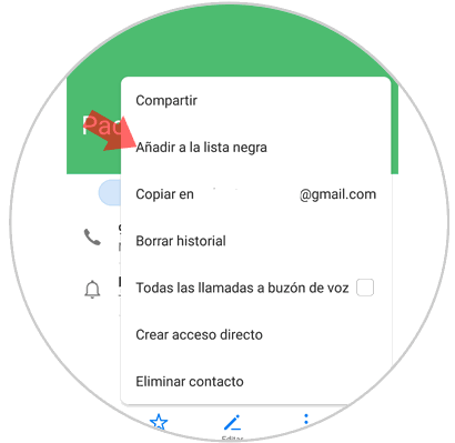 Si mantenemos pulsado en ese número, se desplegará una ventana emergente en el lado derecho donde seleccionaremos la opción “Añadir a la lista negra”