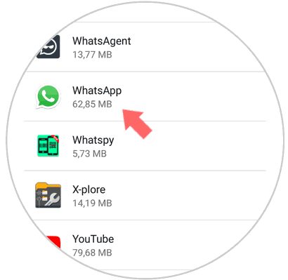 Aparecerá un listado de todas las Apps descargadas en el teléfono. En este caso deberás pulsar en “WhatsApp”