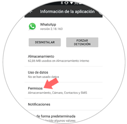 Aparecerán varias opciones de configuración correspondientes a esta aplicación. Selecciona “Permisos”