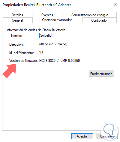 A partir de allí sabremos cual es la versión de Bluetooth que tenemos instalada en Windows 10 y podremos llevar acabo tareas de actualización o soporte.