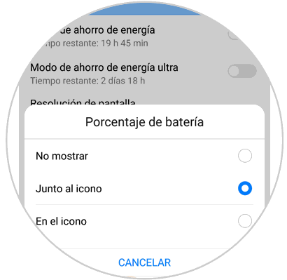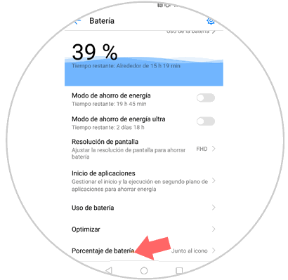 Dentro de las opciones de Batería desliza hasta el final de la pantalla donde verás la opción “Porcentaje de batería” y pulsa aquí para continuar.