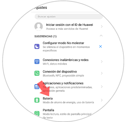 Ahora verás todas las opciones de configuración disponibles dentro de los Ajustes del terminal. Pulsa en “Batería”