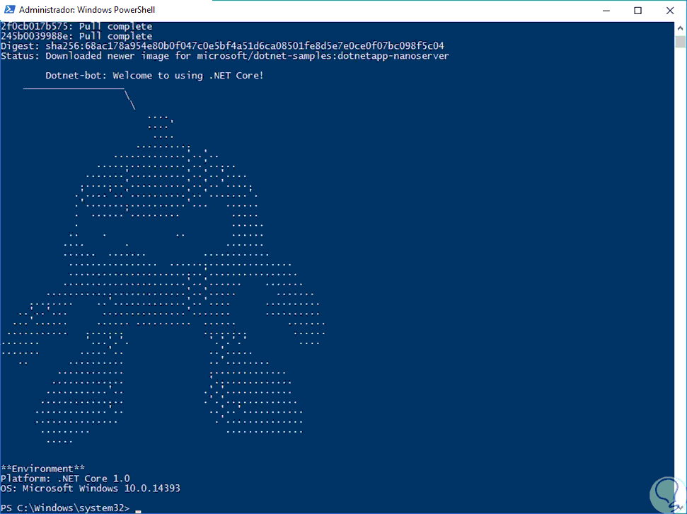 Ahora, podemos descargar y ejecutar una imagen de muestra .NET la cual está disponible en el registro de Docker Hub en el siguiente enlace: