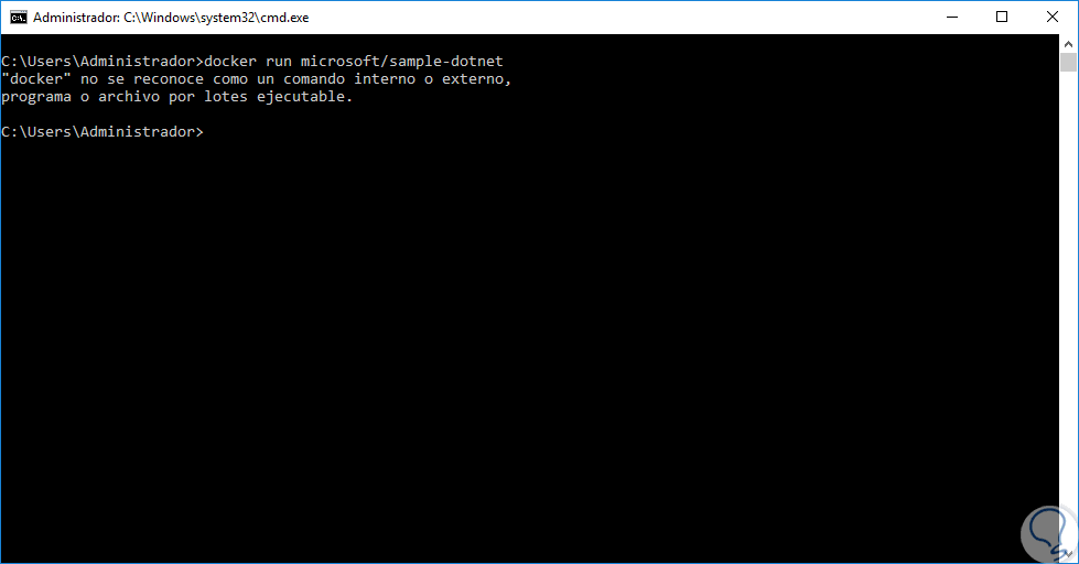 El método anterior es el proceso sugerido para instalar la característica de los contenedores en Windows Server 2019 pero si vamos al símbolo del sistema y ejecutamos la siguiente línea podremos ver que da como resultado un error.