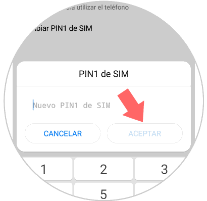 Finalmente ya podemos introducir el nuevo código pin. Un vez que lo hemos seleccionado y marcado tenemos que pulsar en el botón “Aceptar”