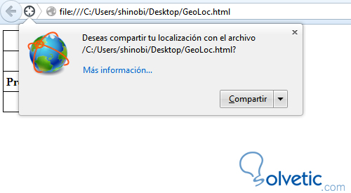 </html>Ahora vemos como el navegador solicita nuestra autorización para dar los datos de nuestra ubicación: