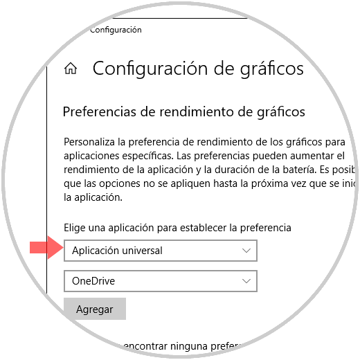 Ahora ha llegado el momento de definir el nivel de GPU para la aplicación seleccionada, para esto, pulsamos sobre la aplicación y serán desplegados los siguientes botones: