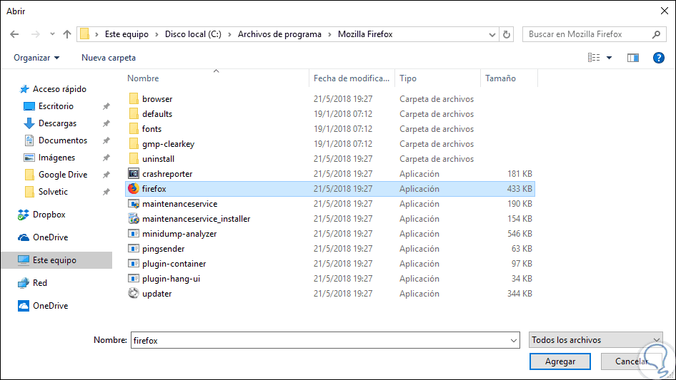 Pulsamos en el botón “Agregar” y veremos lo siguiente: