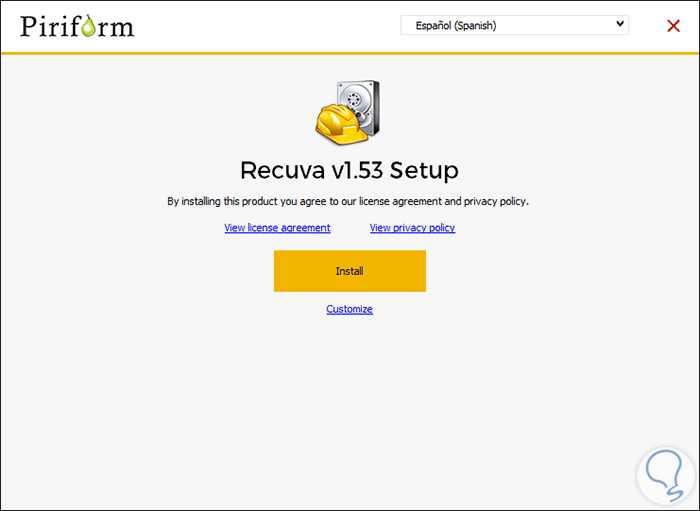 Podemos usar la versión portable de Recuva o bien la instalación local la cual desplegara el siguiente asistente al momento de su ejecución: