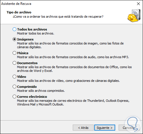 Al momento de ejecutar Recuva veremos el siguiente asistente: