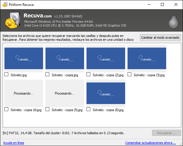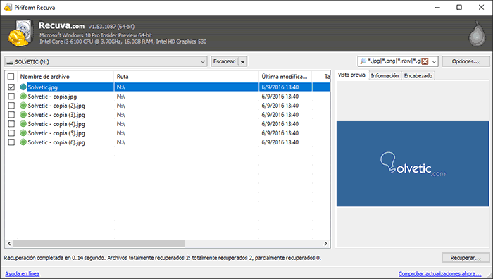 Como podemos ver, Recuva es una practica herramienta para todas las tareas de recuperación de archivos desde cualquier medio.