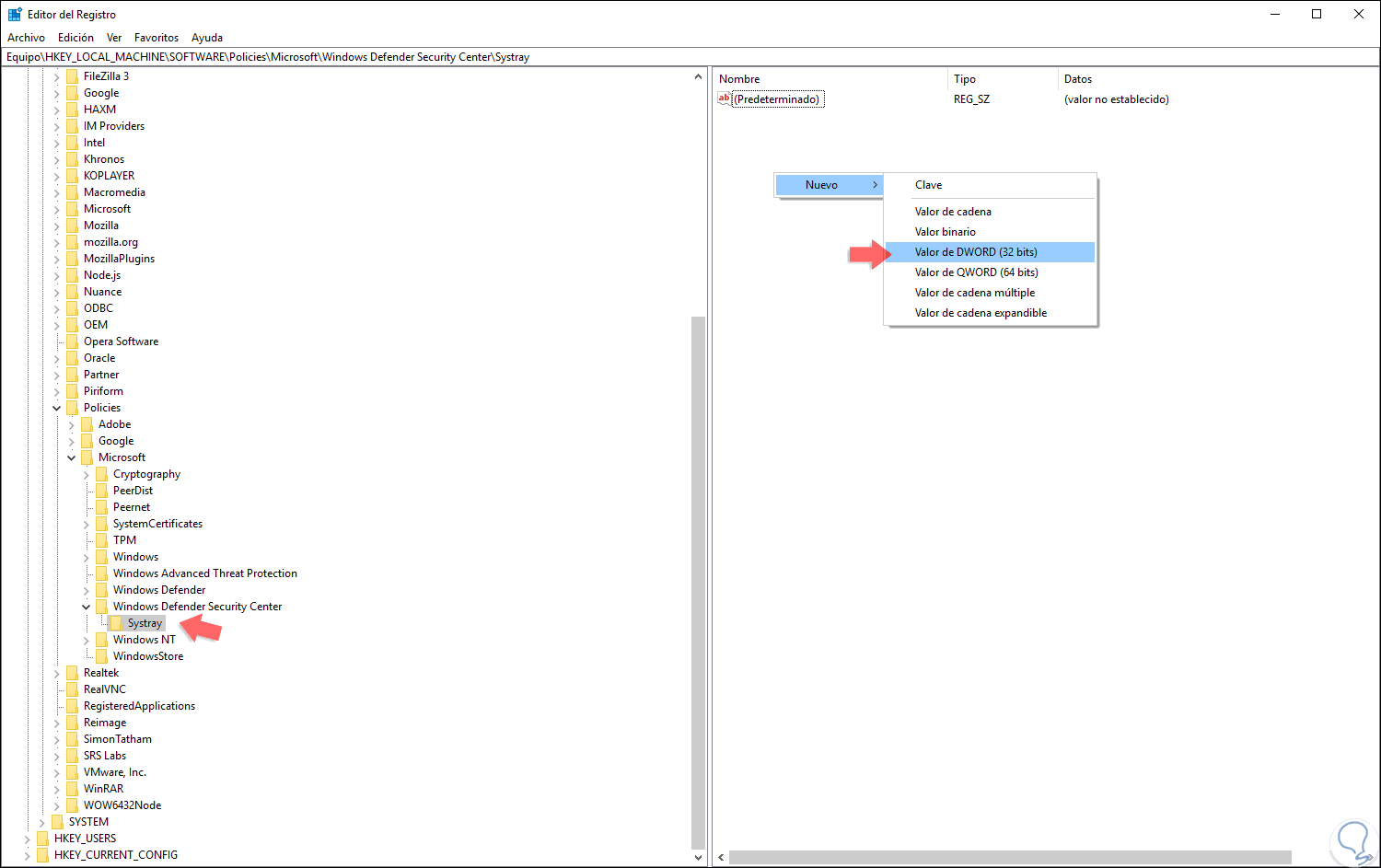 HKEY_LOCAL_MACHINE\SOFTWARE\Policies\Microsoft\Windows Defender Security Center\Systray