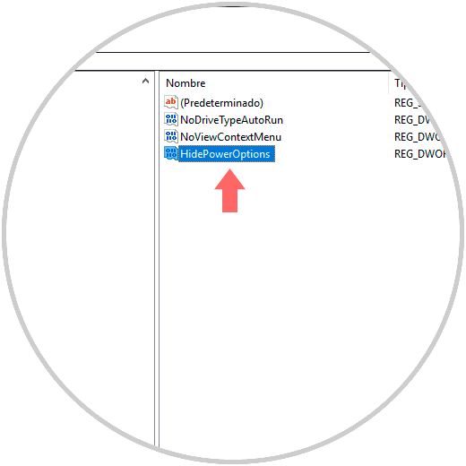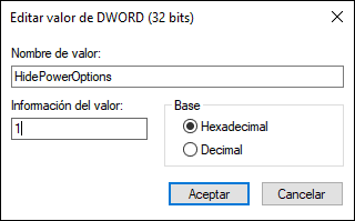 Este nuevo valor será llamado “HidePowerOptions”: