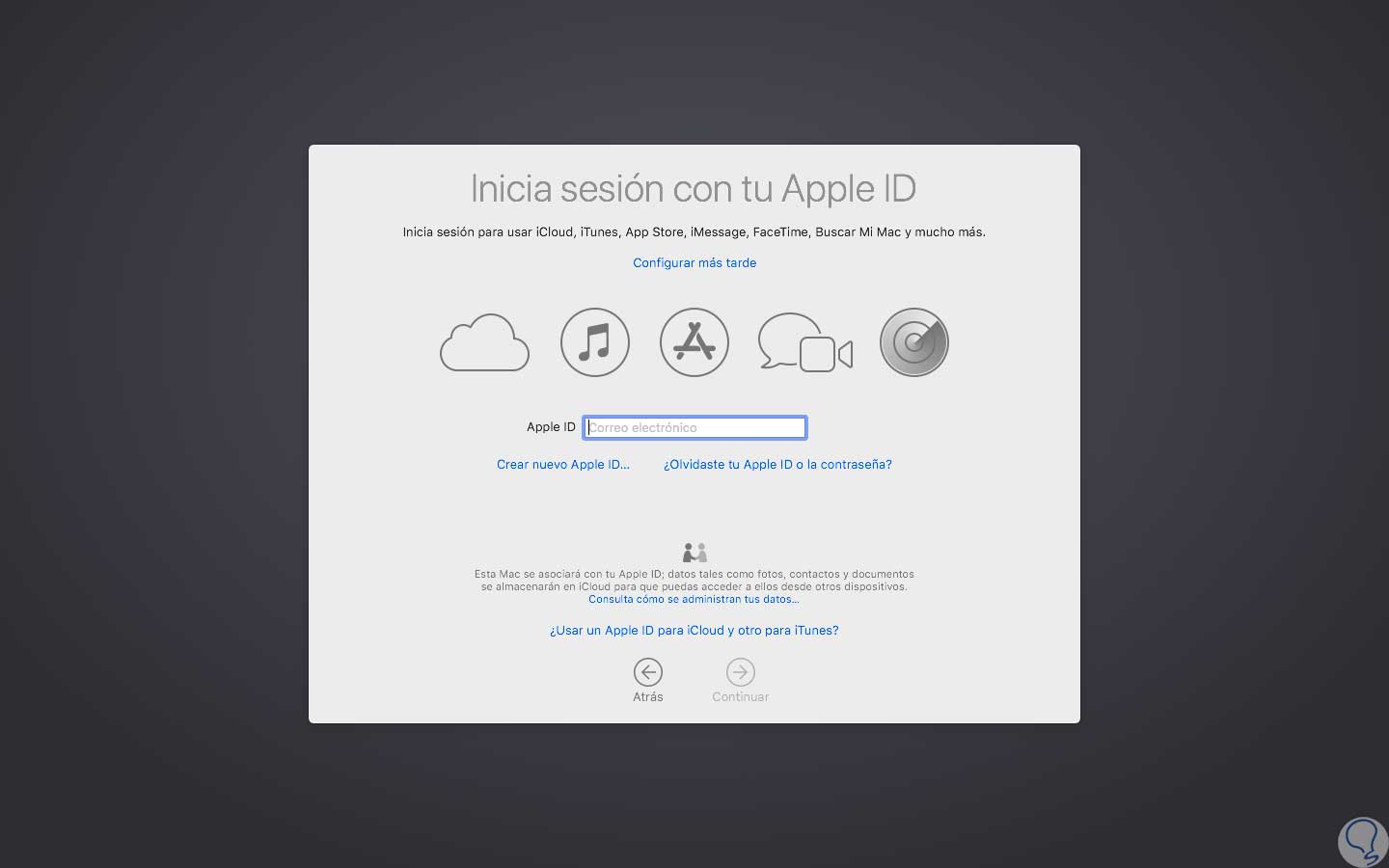 En la siguiente ventana tendremos la posibilidad de ingresar nuestro Apple ID: