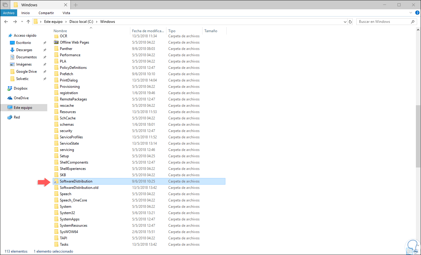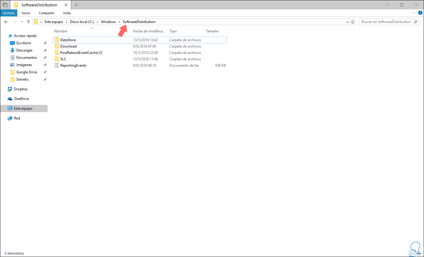 Ahora, la ruta por defecto donde Windows 10 almacena sus actualizaciones es la siguiente: