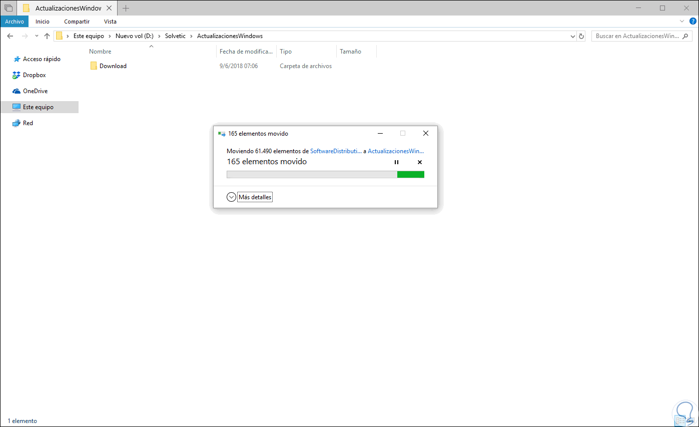 Super información!!! me resulto muy útil, y todo esta tan bien redactado que solo podría opinar sobre algunas instrucciones que se pasaron por alto o que parecen obvias para usuarios avanzados o mas adentrados en estos temas, como lo fue que si el servicio de Windows Update no cuenta con la opción de "detener" es por que el servicio esta detenido, y la parte de la asignación de carpetas, si bien es muy precisa, para algunos usuarios parecería extraño que a ellos no les aparece la dirección "D:\Solvetic", es en donde alguien que sabe seguir instrucciones pero no sabe mucho de informática podría confundirse un poco (o mucho) de ahí en fuera, perfecto!!! saludos y muchas gracias por compartir sus conocimientos!!!