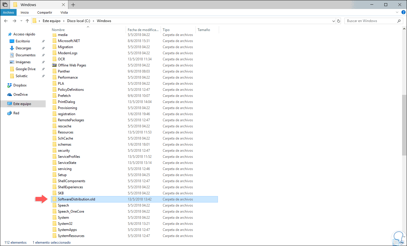 Una vez este proceso finalice podremos remover la carpeta SoftwareDistribution.old de la unidad C.