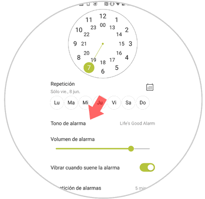 Ahora aparecerás en una nueva pantalla donde podrás ver todas las opciones de configuración dentro de la alarma. Pulsa en “Tono de alarma” para cambiar el preestablecido.