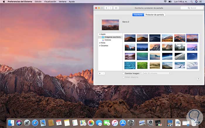 En el momento en que deseemos deshabilitar el escritorio dinámico de macOS Mojave basta con ir de nuevo a Preferencias del sistema / Escritorio y protector de pantalla y simplemente seleccionar cualquier otra imagen y veremos que esta automáticamente se aplica. Ali podremos definir parámetros como seleccionar que imágenes han de ser desplegadas, la frecuencia con la cual cada imagen será desplegada e incluso definir un orden aleatorio.