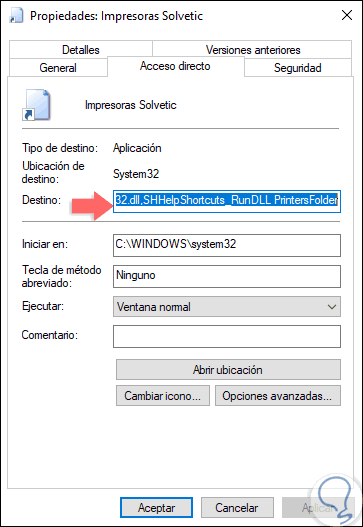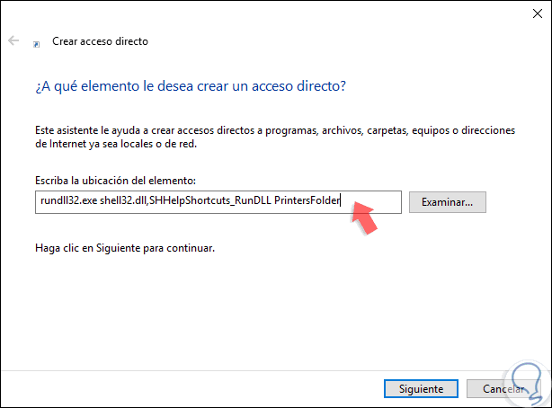 Crear acceso directo de impresora desde el Escritorio en Windows 10