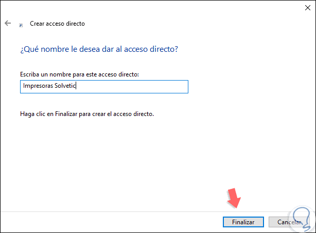 Pulsamos en “Siguiente” y en la próxima ventana asignaremos un nombre para dicho acceso. Pulsamos en “Finalizar” para completar el proceso y salir del asistente.